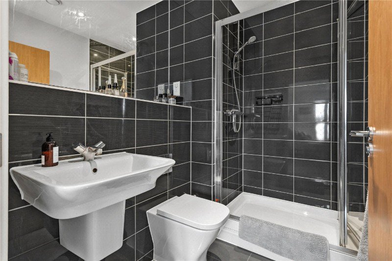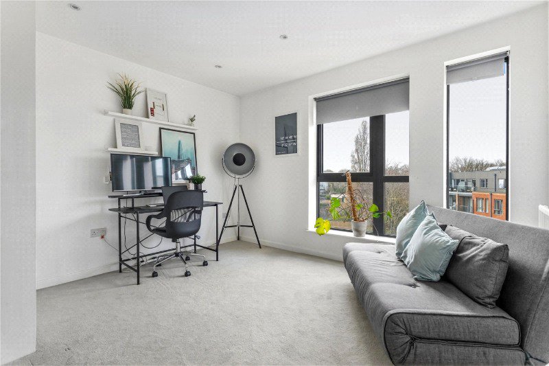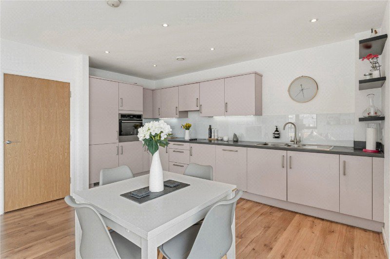 Arranged over 891 sqft., the property comprises of a spacious open plan kitchen/reception room/diner with access through the doors to a private balcony over-looking the development's well-kept communal gardens. The flat has two spacious double bedrooms, one currently used as a spacious home office. Both bedrooms feature built-in wardrobes, the master has an ensuite bathroom with a shower. The second bathroom features a full size bath with a shower over. Both bedrooms offer large windows with impressive views and the apartment enjoys lots of natural light. Additional advantages comprise high grade modern insulation to minimise energy costs, a modern energy system and generous storage cupboard. It also benefits from a dedicated space within the secure underground car parking facility.