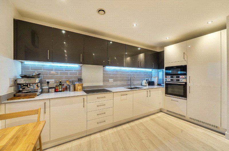 Both bedrooms are good-sized doubles, with the principal bedroom benefiting from an en-suite shower room, alongside a separate contemporary family bathroom. Residents also benefit from secure gated underground parking.