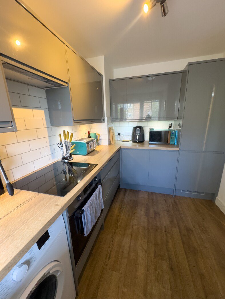 The lower level features a bright and spacious living room, creating the perfect space for relaxing or entertaining. The property also benefits from a separate, fully fitted kitchen with ample storage and worktop space, ideal for everyday cooking.