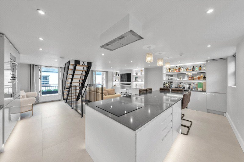 Winkworth are excited to offer this beautifully designed three bedroom mews home, quietly positioned within a charming cobbled mews in the heart of Maida Vale, W9, moments from the canals and cafes of Little Venice. This impressive home offers contemporary living with strong architectural character. Upon entering, the first floor is arranged as a generous open plan kitchen, dining and reception space, creating a bright and sociable environment ideal for both entertaining and everyday living. Large windows and French doors with Juliet balconies enhance the natural light, while a refined neutral palette gives the interior a calm, modern aesthetic. A bespoke steel and timber staircase forms a striking focal point, connecting the living areas to the bedrooms and bathrooms. The second floor provides three well proportioned bedrooms, including a spacious principal bedroom, alongside a bathroom suite with a freestanding bath and separate walk in shower.