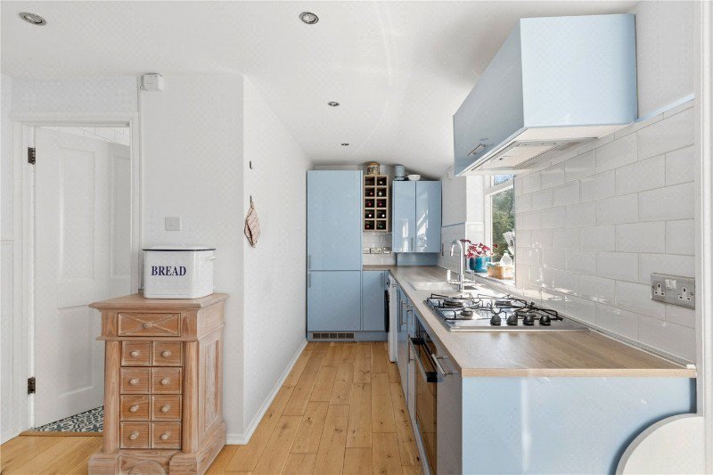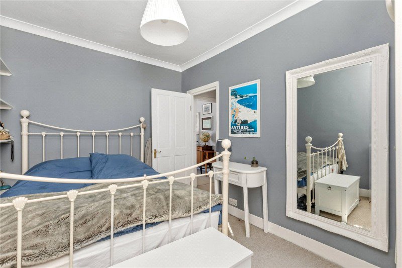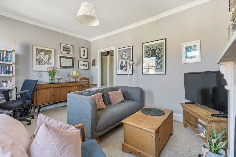A standout feature of the home is the stunning reception room, showcasing large sash windows that flood the space with natural light, alongside a beautiful feature fireplace that adds to the property’s period charm.
