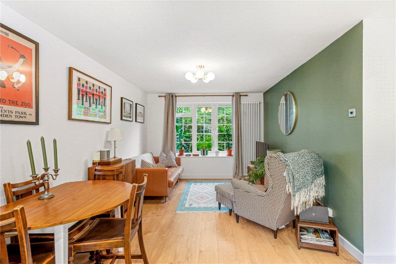 Arranged over 522 sqft., the newly renovated apartment comprises of an open plan reception room, dining area, and kitchen, with new hardwood flooring, an abundance of natural light from the large windows, and modern stylish finishings. The space is the perfect blend of modern living and homely comfort. Next to the reception room is the master bedroom, with excellent storage and built-in cupboards, with a smaller bedroom currently used as a study. The flat comes with a private parking space next to the flat’s entrance and benefits from a lovely view over the communal gardens.