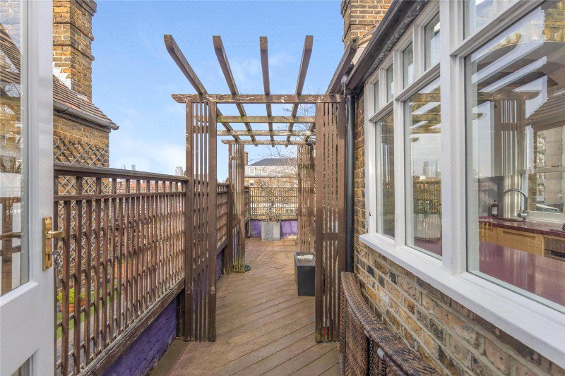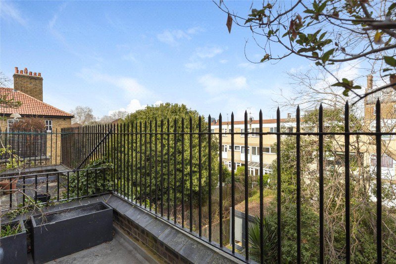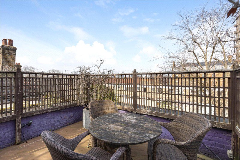 From this level, doors lead out to a fantastic private roof terrace with far-reaching views towards Westminster and the Imperial War Museum—perfect for relaxing or entertaining.