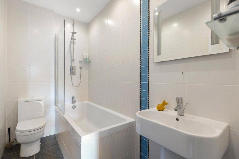The family bathroom includes a shower over bath, WC, basin, and heated towel rail.