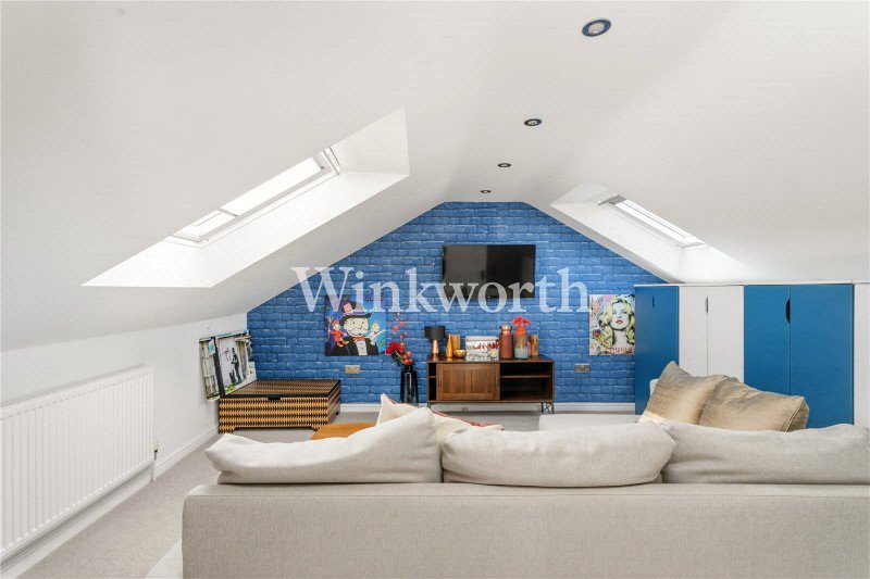 The entrance hall enjoys striking tessellated tiled flooring and stairs leading up to a large, welcoming landing. From here, doors lead to an impressive reception room with a wide bay window and ample space to relax, dine, and entertain. You will also find a modern kitchen with sleek handleless units, two double bedrooms, and a stylish family bathroom with a four-piece suite. The loft has been converted into a third bedroom with en-suite, currently used as an informal lounge, offering versatile living space. The room also benefits from generous eaves storage and a window offering far-reaching views of the City.