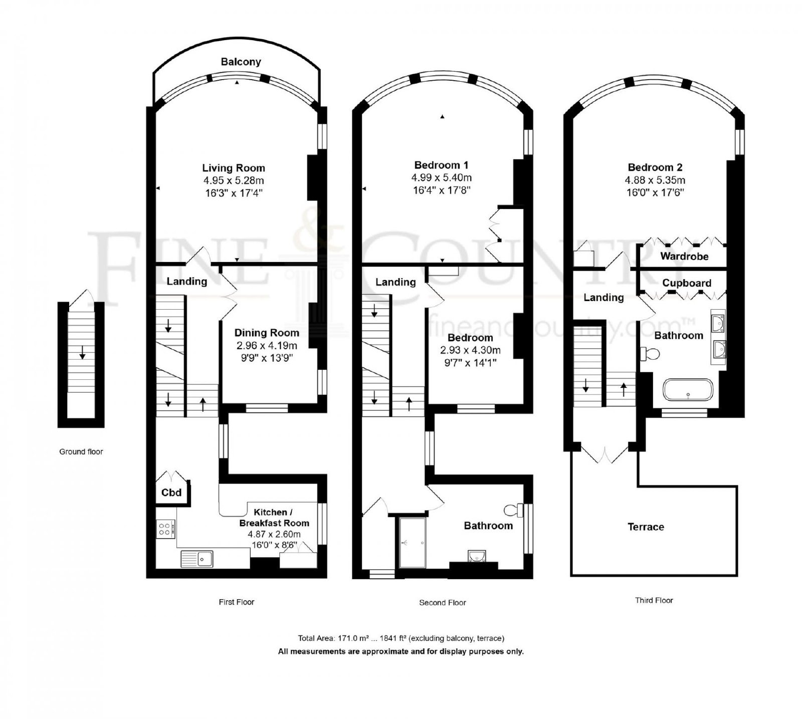 The property is approached via its own private entrance, opening into a stairwell leading up to a first floor landing with coat storage. The design makes clever use of the building’s shape, with the side elevation cutting in to create additional windows and draw natural light into the centre of the home.