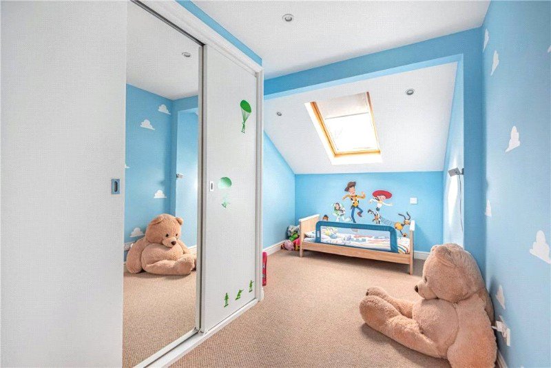 Smooth plastered ceiling with two double glazed Velux windows to the rear, three single door built-in wardrobes all with hanging rail and separate storage space above, single radiator single door access to the eaves storage.