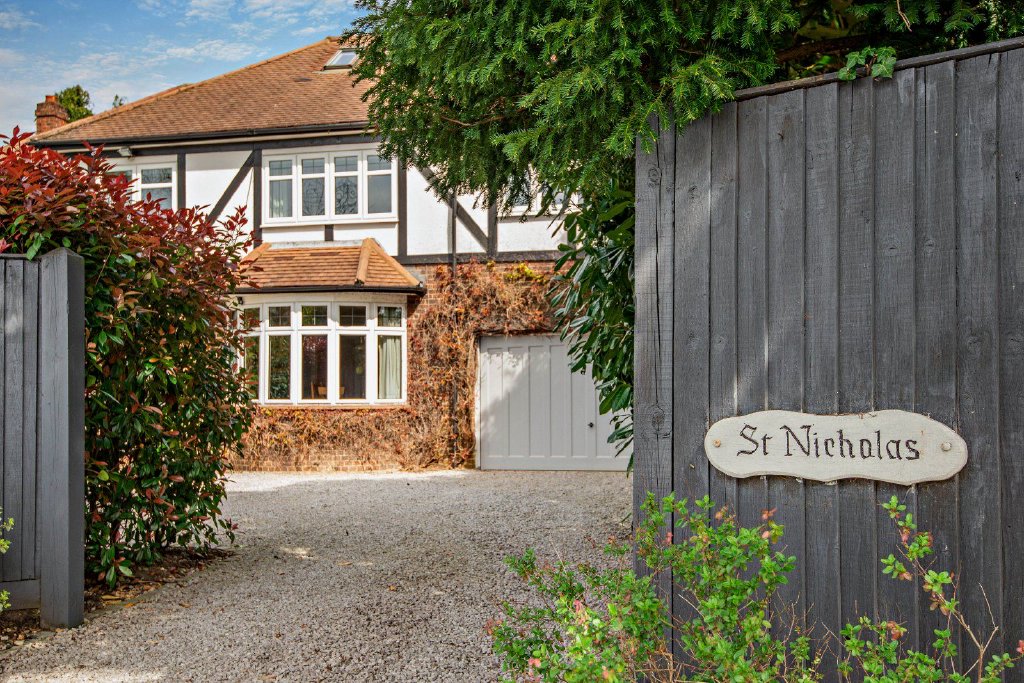 With an attractive fascade featuring decorative timber and white painted infills, St Nicholas offers enhanced accommodation, with light-filled rooms and on-trend interior design perfectly suited to meet the requirements of modern lifestyles. The warm-tones of parquet flooring in the hallway extends into the adjoining formal dining room whilst the sitting room offers a relaxed space centred around a feature fireplace, with French doors opening to the garden. Filled with natural light courtesy of glazed doors and a vast skylight window, the kitchen/family room provides the convivial heart of the home with effortless zoning for informal dining and casual seating, and a seamless transition to the outside. Fitted with sleek cabinetry featuring curved units which soften corners, the kitchen has stone work surfaces and an island unit, with ancillary space provided by the adjoining utility room.