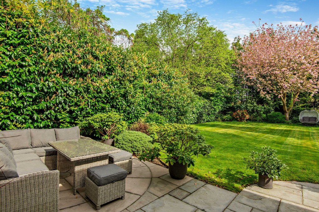 On the first floor, the rooms comprise five bedrooms, two benefitting from modern en suite facilities, and a luxurious family bathroom with sauna. Tucked away at the top of the house, the second floor offers a smart, flexible-use space with options to provide a sixth bedroom, a cinema/leisure room or a hang-out zone for teenagers. Outside