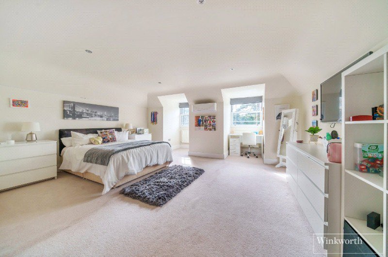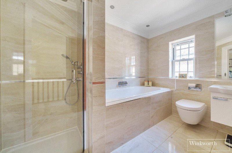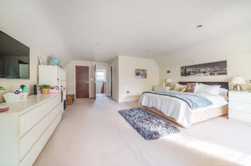 Proceeding up to the first floor you will find four large double bedrooms, all with fitted wardrobes. The principal bedroom benefits from an en suite bathroom, plus a Juliet balcony overlooking the garden. There is a further en suite shower room plus a family bathroom. On the second floor there is a fifth bedroom with en suite shower room, walk in dressing area and storage cupboard. The property also offers underfloor heating and air conditioning.
