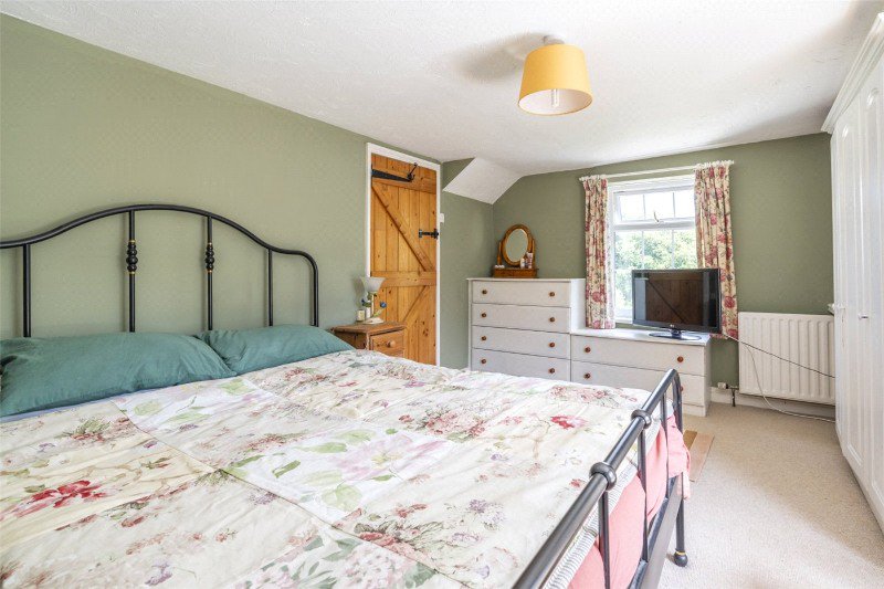 From the dining room, a concealed staircase leads to a first floor landing with an under stairs cupboard. The spacious dual aspect principal bedroom has fitted wardrobes and chest of drawers, and superb view over the rear garden.