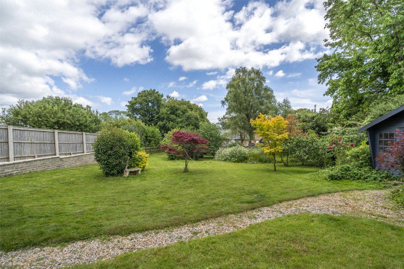 A tarmac driveway enclosed by hedges, with a colourful flower bed, provides off road parking and leads to a detached garage (with up-and-over door and gabled slate roof.) Pedestrian and 5-bar gates lead to the impressive garden which extends to about a third of an acre. It includes 2 entertaining terraces close to the house, a large, gently sloping lawn, a timber chalet, a greenhouse, a wildflower area and a wealth of planting including ferns, roses, maple, grasses, acers, climbing roses and mature fruit trees.