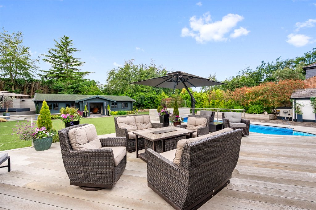 This substantial family home spanning 8644 sq. ft on a plot measuring 0.46 acres, has been significantly extended and improved by the present owners to the very highest of specifications and offers a host of luxuries throughout including an outdoor pool and dedicated jacuzzi, spa and BBQ area. Luxury gym and steam room with state-of-the-art technology running throughout the property.