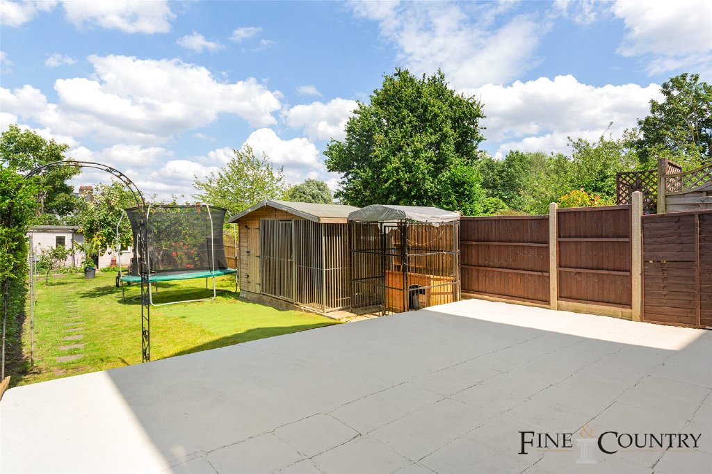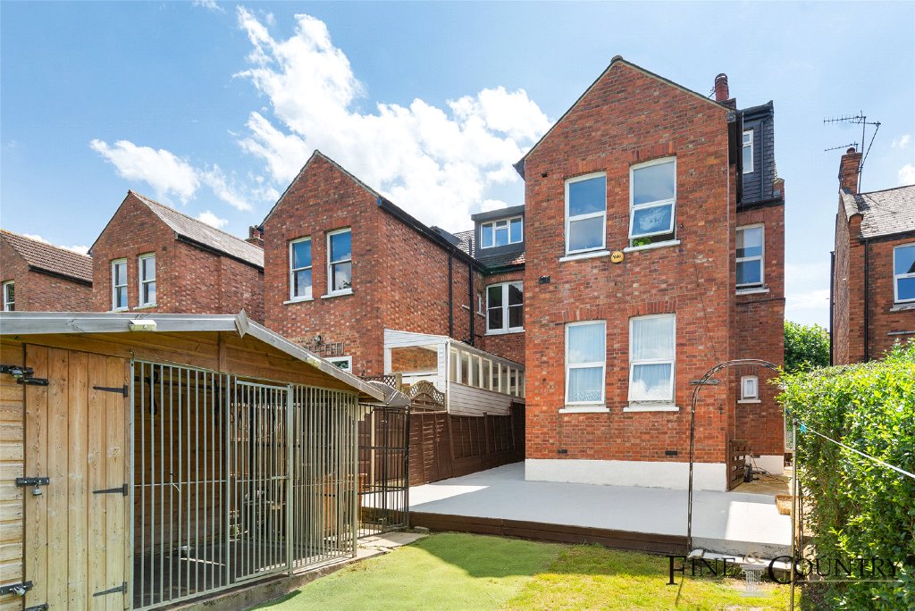 The property features a beautifully maintained garden, expanding across approximately 85 feet, with a lush lawn, mature trees, and shrubs that create a sense of privacy. The garden offers a serene retreat, perfect for relaxation and entertaining, with a spacious patio area ideal for outdoor dining. An outbuilding provides additional space, suitable for a home office, studio, or storage. The garden's design enhances the tranquil ambiance, while the property's driveway offers convenient off-street parking.