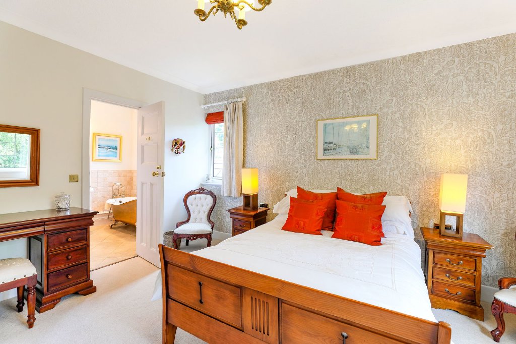 The principal suite opens directly onto the garden terrace, an effortless indoor and outdoor connection that defines relaxed luxury. Every room enjoys views of greenery, making the home feel calm, light and connected to nature throughout the year.