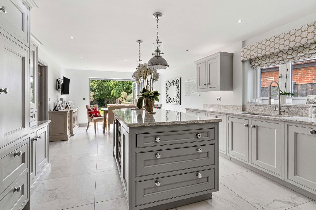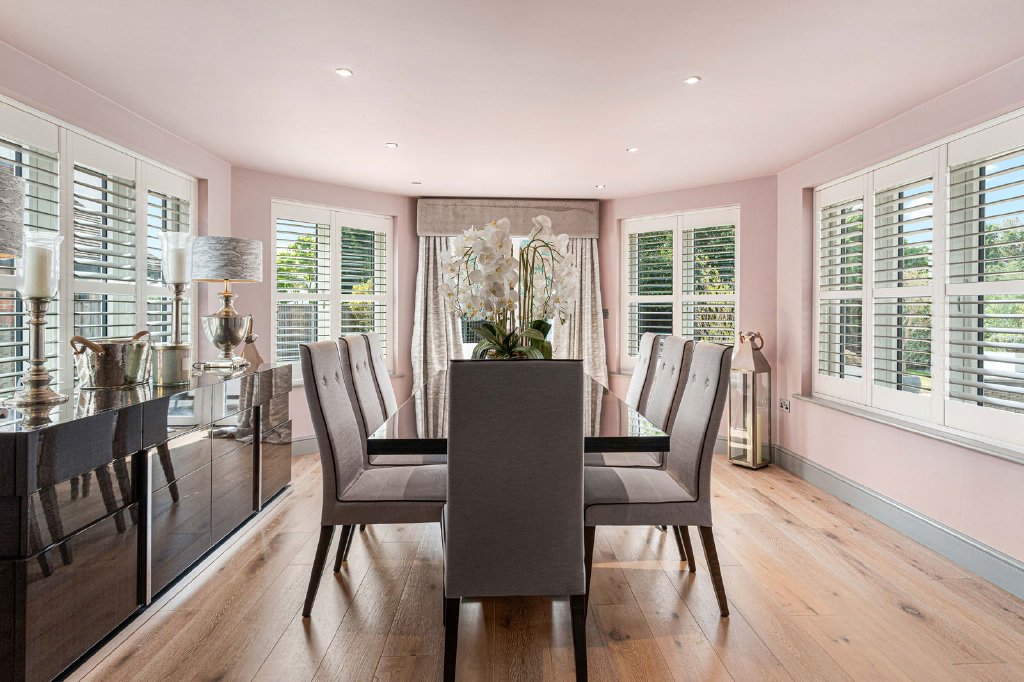 Step inside this extremely attractive and spacious four-bedroom detached family home which can be found nestled in a favourable position within this private road. Enter into the generous hallway to find doors leading to the solid oak kitchen, living room, study and ground floor WC. Double doors connect the living room to the shapely dining room and further sitting room which link beautifully to the kitchen via a further set of double doors, all having great views of the rear garden. Bring the outside in through the aluminium bi-fold doors leading from the kitchen. Walking past the ground floor WC and through the very useful utility area is a further reception room which is currently being utilised as a family/playroom, which also has the benefit of ample storage. Returning to the hallway stairs lead to the generous sized landing space. The principle bedroom suite is complete with a bespoke solid oak dressing room and en-suite comprising of 'Drummonds & Porter' marble vanity units, and having the luxury of a ‘Drummonds’ bath. There are a further three double sized bedrooms, guest en-suite and family bathroom all with high quality 'Drummonds & Porter' marble, fixtures and fittings.