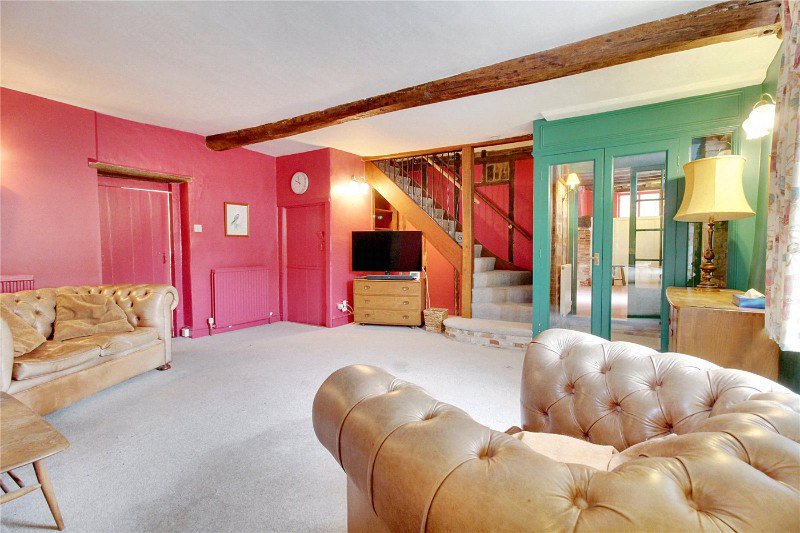 The house provides spacious and versatile accommodation throughout. Entry is via a useful enclosed lobby, which opens into both the Sitting Room and Dining Room. The Sitting Room is a particularly impressive space, combining scale and warmth, with a large fireplace housing a multi-fuel stove and an abundance of period features. From here there is also access to a large, boarded cellar, offering excellent additional storage.