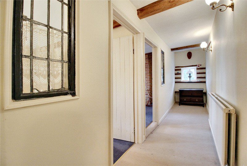 Stairs rise to the first-floor landing, where there are three double bedrooms and a fourth single bedroom. The principal bedroom is notably spacious, with built-in storage and a large en-suite bathroom with both bath and shower. The second bedroom provides access to the loft space via a built-in staircase. A well-proportioned wet room with airing cupboard completes the first-floor accommodation.