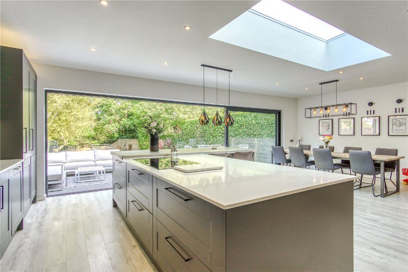 - An impressive luxury kitchen/family room with large sliding doors