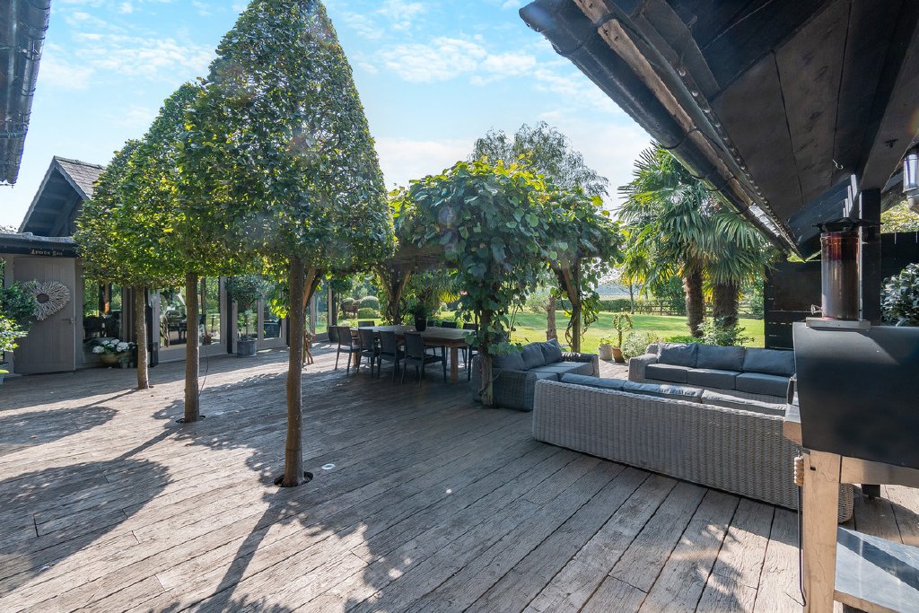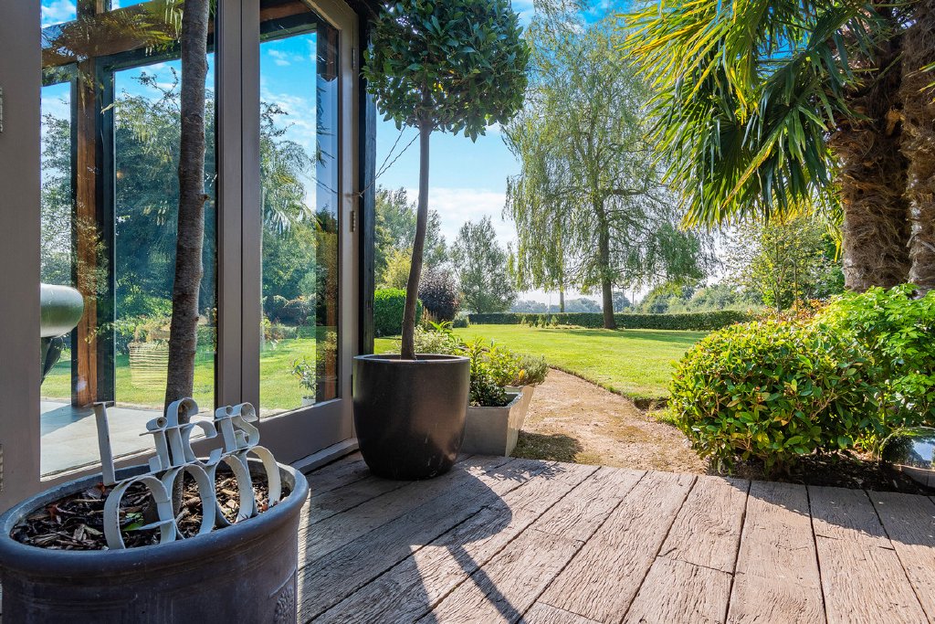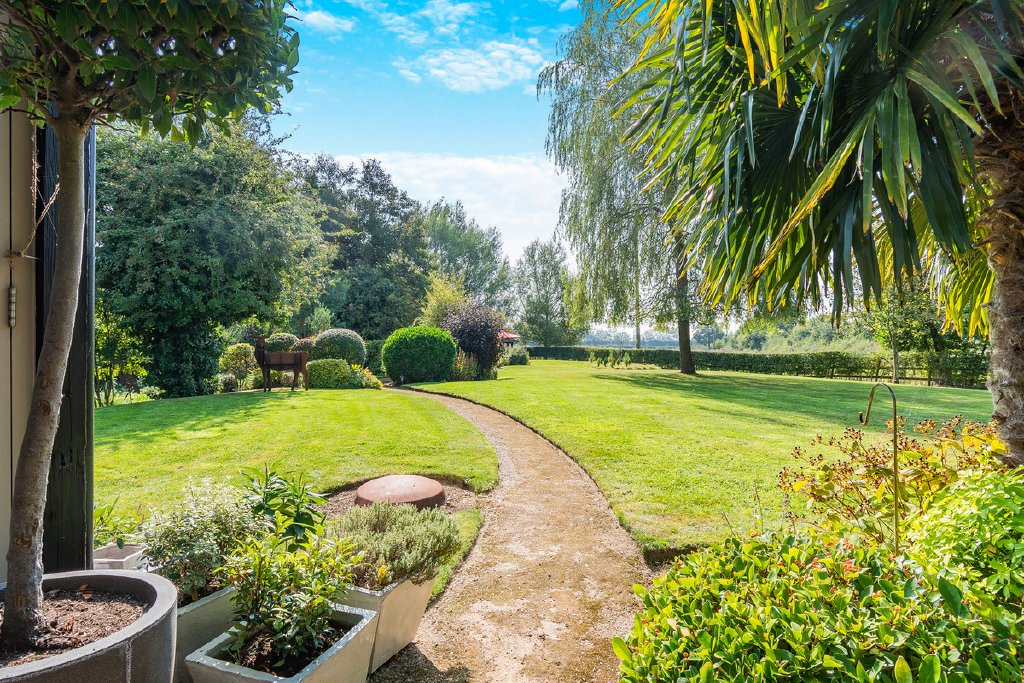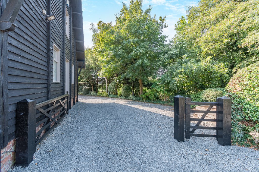 The private, gated driveway leads to a triple garage, ensuring ample parking for residents and guests alike. The plot extends to a generous 0.7 acres, featuring lush lawns, enchanting watercourses, and a fabulous outdoor terrace designed for luxurious alfresco dining.