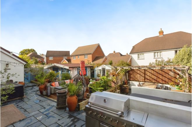 This stunning five-bedroom detached home, built in 2018, is located in the picturesque village of Rolvenden, close to the historic towns of Tenterden and Cranbrook in Kent. Blending modern design with indoor and outdoor luxury, this home is perfect for families seeking space and comfort. Since purchasing in 2019, the current owner has added character and charm, enhancing its contemporary appeal. Inside, the property features three spacious reception rooms, a modern kitchen with ample storage, and a utility room. The five bedrooms include a master with an en-suite, complemented by a family bathroom and a ground-floor cloakroom. The expansive garden is a standout, ideal for outdoor living and entertaining, featuring a custom-built studio currently used as a home pub, a jacuzzi, a decked seating area, an outdoor kitchen, and a dog play area. A double garage and two additional driveway spaces offer ample parking. Rolvenden offers a vibrant community with a primary school, church, local shops, pubs, and a weekly food market. Just five minutes away, Tenterden offers boutique shopping, restaurants, bars and supermarkets. The village is within the catchment area of top schools like Cranbrook, Benenden, Highworth and Norton Knatchbull, with private school buses serving the area. Surrounded by beautiful countryside, Rolvenden is perfect for outdoor activities such as walking and cycling, with the High Weald Area of Outstanding Natural Beauty nearby. Commuters benefit from excellent road links via the A21 and A28, with Headcorn and Staplehurst stations offering trains to London in just over 50 minutes. Ashford International provides high-speed links to London and Europe, while Gatwick Airport is just 50 minutes away. This property offers the perfect balance of village life, modern amenities, and access to scenic countryside, all within reach of the coast, just 25 minutes from Hastings and Bexhill. Viewings are highly recommended, book 24/7 online/phone Purplebricks.