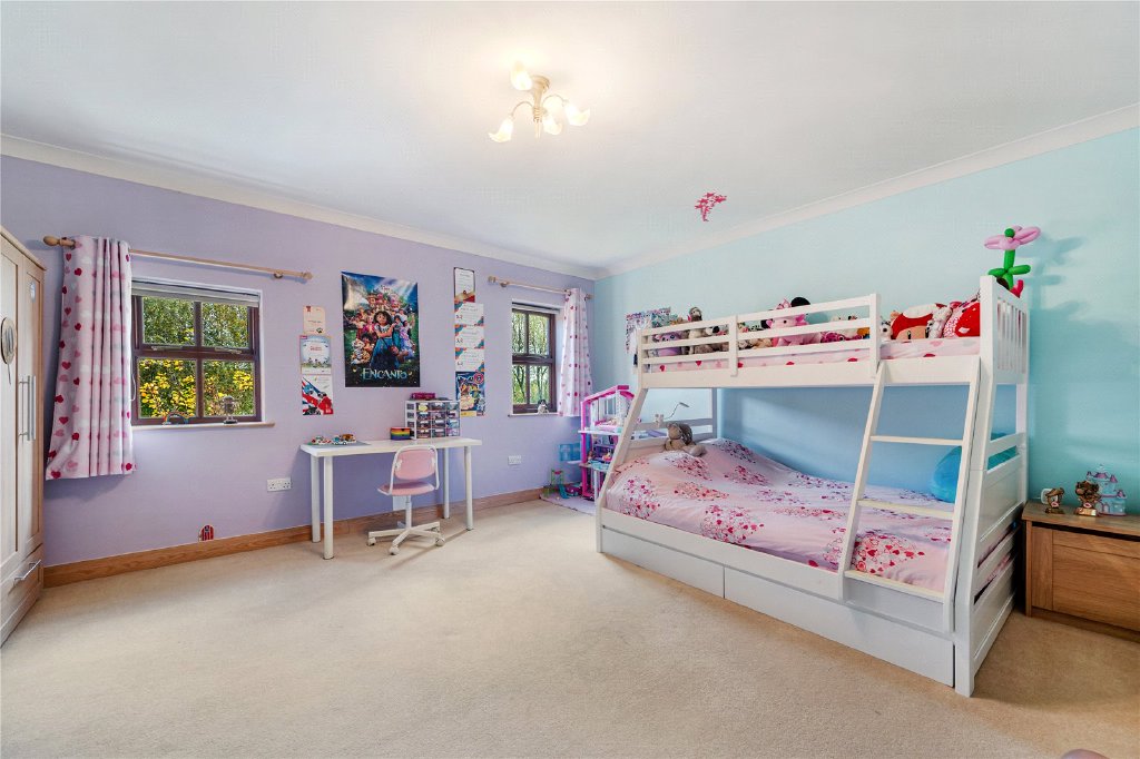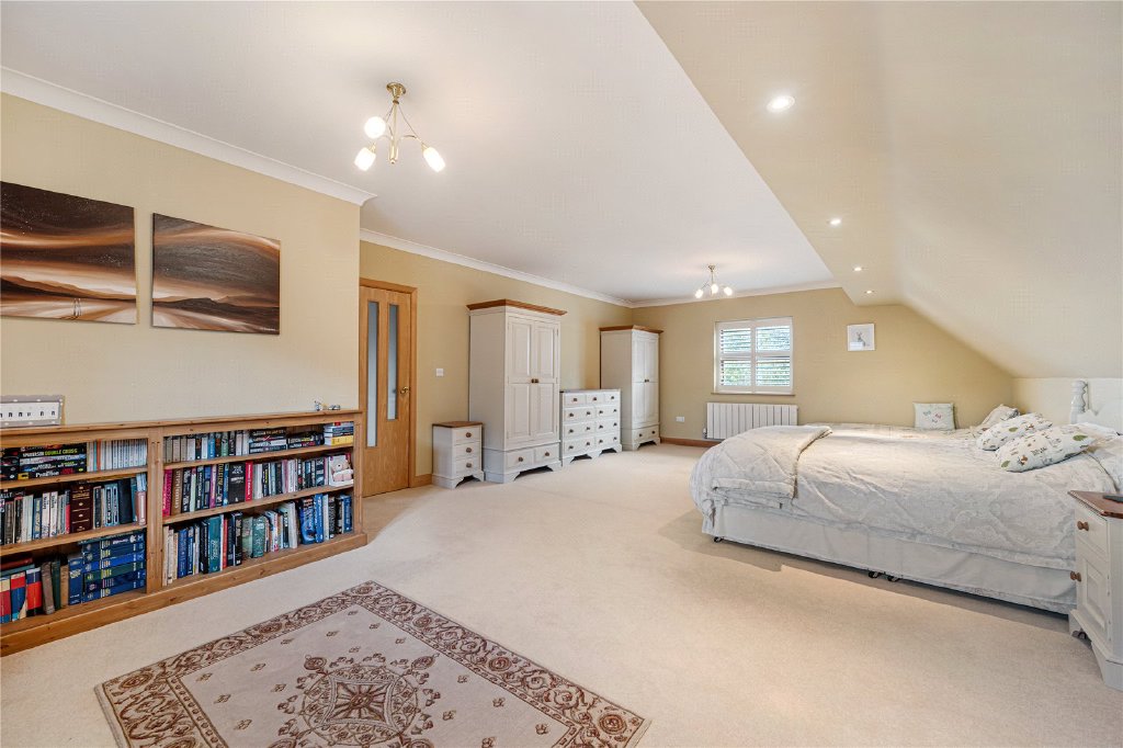 Heading upstairs, this home features four generous bedrooms, perfect for family or guests, alongside a well-appointed house bathroom. The main bedroom is a serene retreat, complete with an en-suite bathroom and picturesque views of the rear garden and surrounding fields, ensuring a peaceful sanctuary for relaxation.