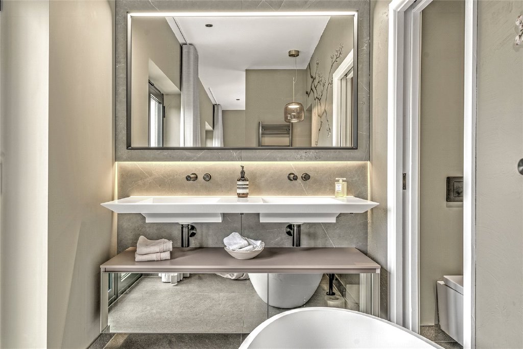 - Bathrooms designed by Idea Group, Italy, featuring Lusso Stone fittings, solid marble basins, and intelligent lighting systems.