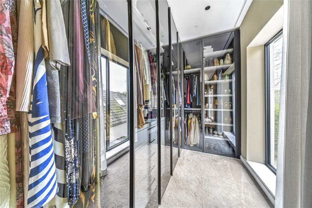 The bespoke staircase, meticulously crafted by Multi-Turn in Hampshire, stands as a stunning architectural centrepiece, elegantly leading to the first-floor accommodation. Here, luxury prevails in the four en-suite bedrooms, each thoughtfully designed with ample built-in storage. The two primary bedrooms offer a tranquil retreat, complete with Fujitsu ducted air conditioning, lavish en-suite bathrooms, and spacious walk-in wardrobes.