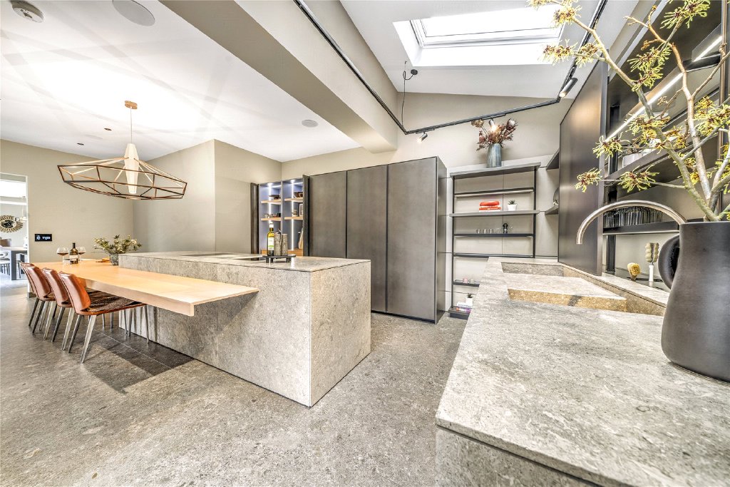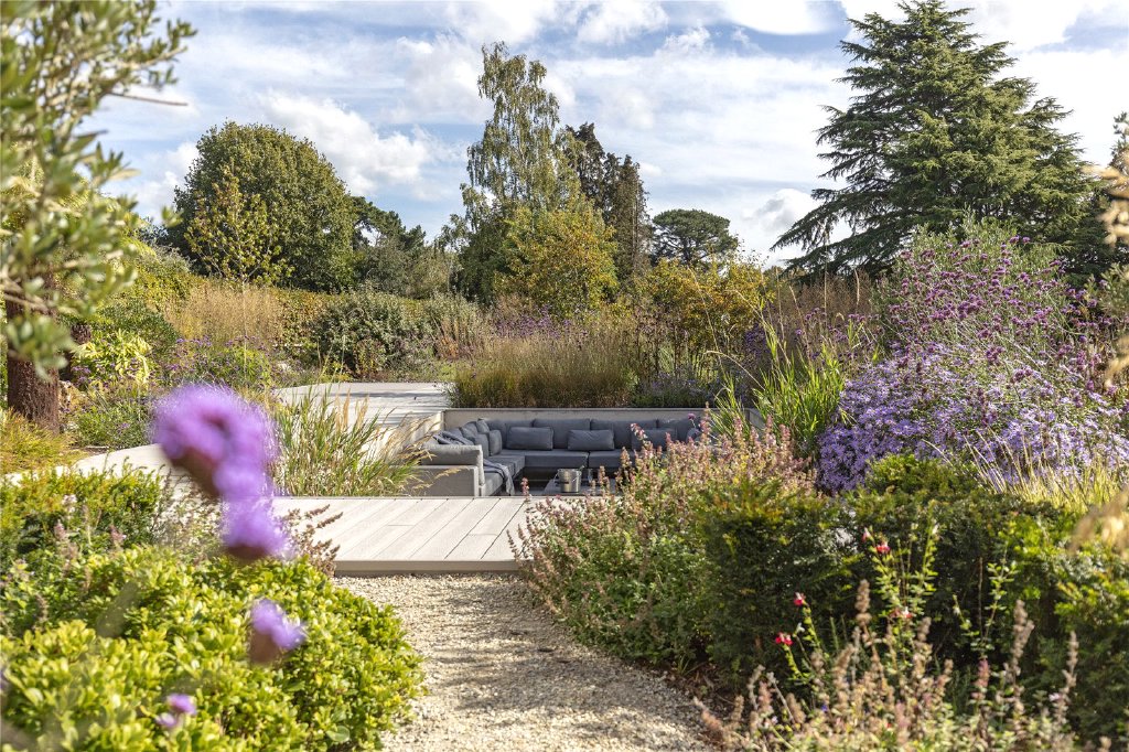 Outside, the gardens—designed by award-winning garden designer, Andy Sturgeon—create a serene private sanctuary. Every element has been carefully considered to provide a harmonious blend of relaxation and sensory stimulation. Highlights include a sunken seating area, a garden room, and a charming kitchen garden.