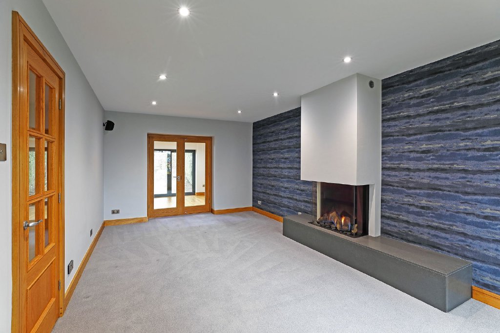 The lounge offers generous proportions, is positioned to the front aspect of the home with a window overlooking the front garden set within a stone mullioned surround whilst internal French doors open to the garden room. A feature living flame gas fire sits within a chimney breast forming an impressive focal point to the room.