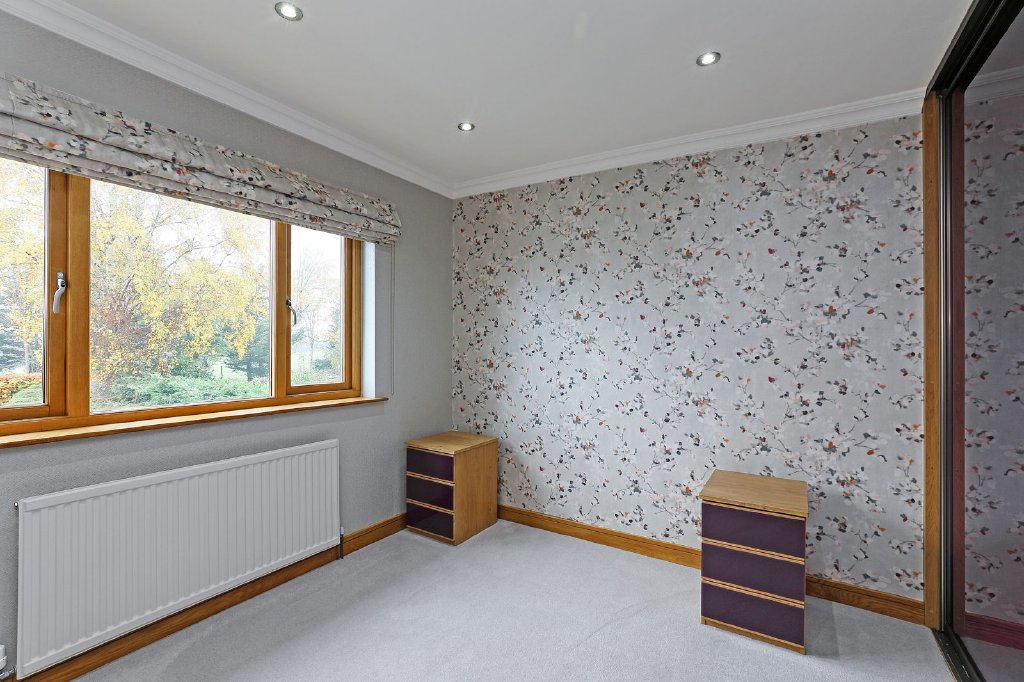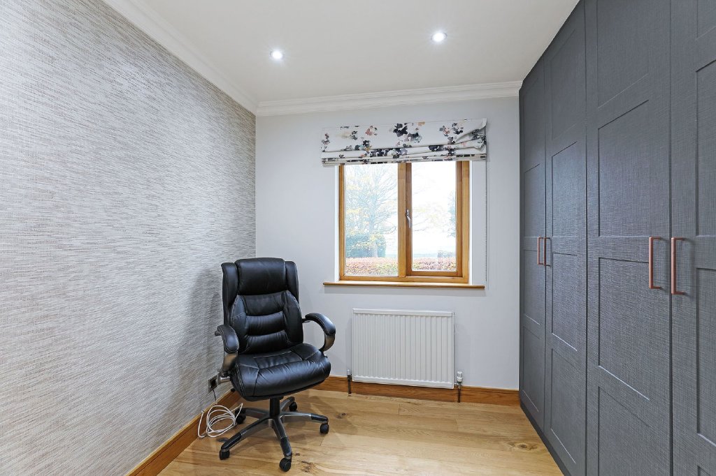 The fifth bedroom is currently used as a home office, has fitted wardrobes to one wall and a window to the rear elevation.