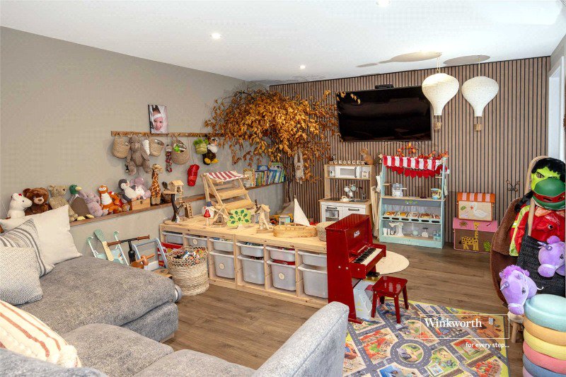 Outside has been extremely well designed with entertaining at the heart of the design. The large deck creates a beautiful dining area, and houses the outdoor kitchen with fitted gas BBQ, lighting and storage. (Please note Pizza oven Harrison over are excluded from the sale).