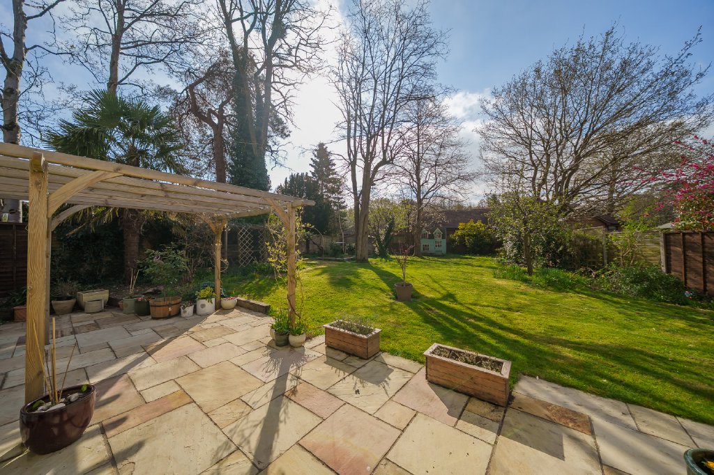 This fine wing of a house sits proud in its plot with pretty south east facing gardens. There is ample off road parking to the front elevation and pedestrian access to the rear gardens. There is a good sized patio area in a pleasant Indian sandstone with a large timber loggia adjoining the rear of the house. There is ample room for seating areas ideal for entertaining, relaxing and Al fresco dining. There is a good amount of level lawn areas with hedges, shrubs and trees giving good privacy and seclusion. In all the plot measures just under 0.2 of an acre.