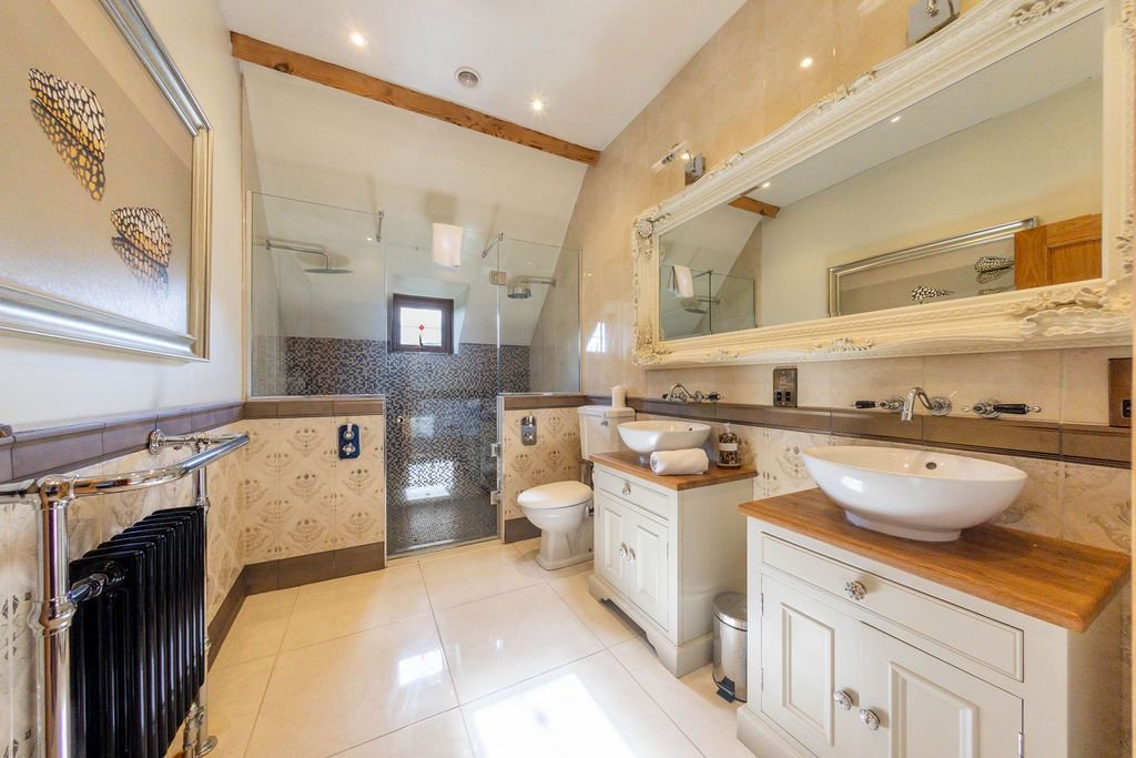 Mains water and electricity. Biomass boiler providing central heating and hot water. Private sewerage to two septic tanks serving the house and The Lodge.