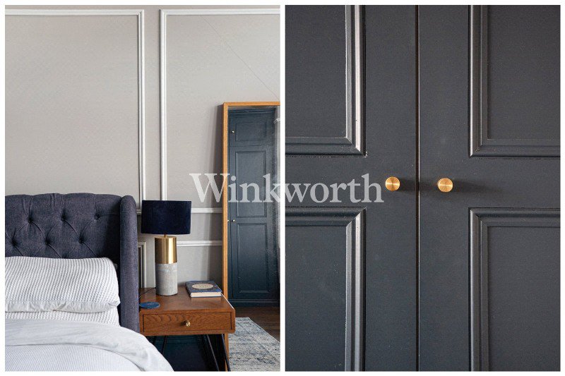 On the first floor, you will find three generously proportioned bedrooms, including an exceptional principal bedroom with panelled walls, sash windows with fitted shutters, a cast iron fireplace, and two full-height built-in wardrobes. The adjacent bedroom features French doors opening onto a charming front-facing balcony. The bathroom is truly stunning, boasting a traditional suite with a freestanding clawfoot bath, 'his and hers' wash hand basins, and a double walk-in shower.