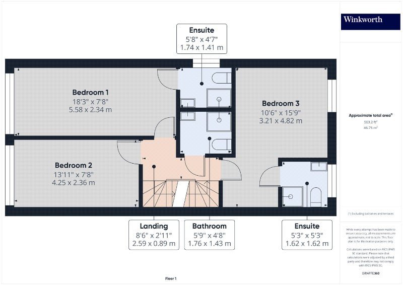 Boasting three generously sized, very bright bedrooms, each with its own en-suite bathroom and a further extra bathroom, this home offers privacy and comfort for the entire family.