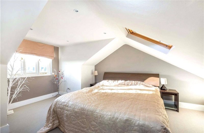 The top-floor bedroom is complemented by an en suite bathroom and has skylights which provide lots of natural light.