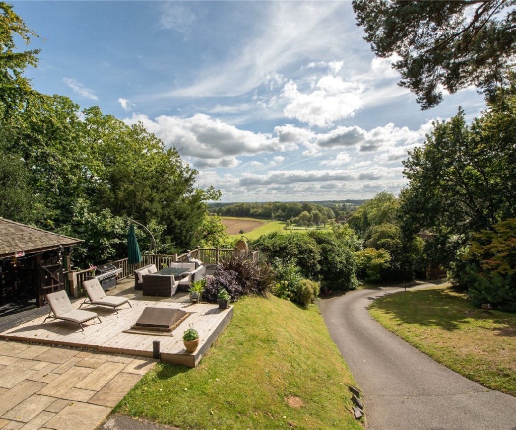 AN OUTSTANDING AND SUPERBLY PRESENTED FAMILY HOME IN A WONDERFUL, PRIVATE AND ELEVATED POSITION ON THE EDGE OF DORKING TOWN WITH DELIGHTFUL FAR-REACHING VIEWS.............<br/><br/>Lakrigar is a truly unique and rather stunning detached family home, occupying an elevated and commanding location within its own private and secluded grounds, of approximately an acre. The property has been renovated and modernised over the years, creating a contemporary design that flows throughout the property, and the general layout has been designed to maximise the wonderful outlook, with remarkable views, sweeping east towards the Surrey/Kent border. The accommodation is bright, spacious and versatile, as can be identified by the floorplan, and some of the particular noteworthy features include a charming sitting room, which is superbly proportioned with patio doors flowing out to the substantial sun terrace. The kitchen/dining room is very much the “hub of the home”, featuring a full height vaulted ceiling, with a large picture window and above an apex window – all of which maximising the light and capitalising on the fine views. The kitchen itself has been comprehensively fitted with kitchen furniture and complimented by granite worksurfaces. Adjacent to the kitchen is the centre reception room with a wood burning stove. There are three bedrooms on the ground floor, all of which have built in wardrobes and are served by two bathrooms/shower rooms. The first floor is a magnificent space, currently used a principal suite, but given the size could easily be two bedrooms, incorporating a main bedroom with a sitting area, dressing room and luxurious en-suite bathroom.<br/><br/>The grounds are an outstanding feature of Lakrigar appreciating a great degree of privacy and very much in harmony with the property. There are many superb seating areas including an excellent al fresco entertaining area with a gazebo and a raised area of decking to enjoy the glorious views. On the southern section of the gardens there is an area laid to lawn with established plant and shrub borders and a detached studio that could be used for a variety of purposes. Lakrigar is approached by a long sweeping driveway, which passes the detaching garaging, this in itself offers great potential and the driveway climbs and terminates at the property - offering plenty of parking and turning.