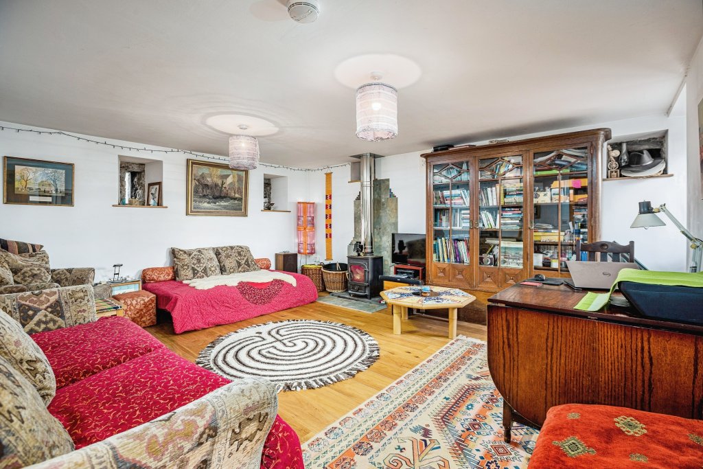 Nestled in the heart of the Powys countryside, this beautifully converted eco-friendly barn offers a rare opportunity to embrace a sustainable lifestyle in a tranquil setting. Set on approximately ¾ of an acre, the property boasts stunning views, a river running through the land, and an array of eco-conscious features, making it ideal for those seeking space, privacy, and self-sufficient living. Upon entering, a spacious hallway leads into the large open-plan kitchen and dining area, designed for both functionality and style. This space flows seamlessly into a utility room and cloakroom, while also providing access to a conservatory with breathtaking rear-facing views of the land. The property benefits from an off-grid water supply, sourced from a private borehole with drainage, meaning no water rates. Heating is provided through a Ground Source E10 Heating system, and a wood-burning stove, ensuring year-round efficiency and warmth. From the hallway, the spacious family lounge serves as a warm and inviting retreat, complete with a log-burning fire, adding to the home’s rustic charm. To the first floor, the exceptional master bedroom benefits from its own ensuite bathroom, offering a private sanctuary. The large landing provides access to a generous family bathroom, equipped with a bath, toilet, and sink, as well as additional storage cupboards. Two further well-proportioned double bedrooms complete the upper level, each providing comfortable accommodation with scenic outlooks. Exterior & Grounds: The property is set on a substantial plot, featuring rolling countryside views and a picturesque river running through. Additional outbuildings include a detached garage/workshop, bath house and an attached store/boiler room. Ample off-road parking is also available. Offering a perfect balance of rural charm and modern sustainability, this unique home is a must-see for those looking to escape to the countryside.