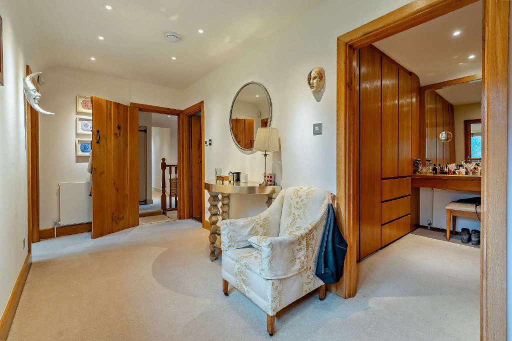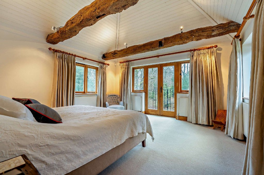 The bedroom accommodation is particularly generous with an impressive triple aspect principle bedroom with a vaulted ceiling, exposed beams, French doors to a private balcony, two fitted dressing rooms and a spacious en suite bathroom. The 5 further bedrooms are arranged over two floors and are served by 3 additional bathrooms.