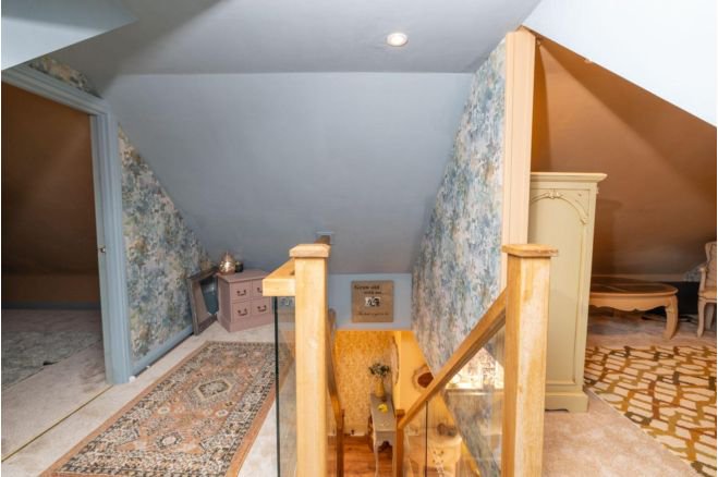 A One-of-a-Kind Home with Over 2,500 Sq Ft of Versatile Living Space -All serious offers considered Located within a peaceful cul-de-sac in the picturesque village of Welbourn, this individually designed and built detached residence enjoys stunning views over open fields to the rear. Immaculately presented throughout, the accommodation begins with a spacious reception hallway, where a staircase ascends to the main living area. The ground floor has two generous double bedrooms, including a master suite with French doors opening onto the rear garden and a luxurious En-suite bath and shower room. A further shower room and internal access to the garage which has a utility area within, add to the convenience of this thoughtfully designed space. A true highlight of the home awaits on the first floor—an impressive 34-foot open-plan living, dining, and kitchen area ideal for entertaining, with the Kitchen having been recently updated with Howdens two tone range of base and wall units . This stunning space extends into a charming garden room, where French doors lead onto a balcony, offering uninterrupted views over the surrounding countryside. A separate cloakroom completes this level. Rising further, the top floor presents a versatile layout, featuring another large double bedroom, a study or dressing room that could serve as an additional bedroom, and a further bedroom with its own En-suite. Outside, the property offers ample parking with a spacious driveway and an oversized single garage, while the beautifully landscaped rear garden is a true retreat. Thoughtfully designed with a blend of patio, gravel, and lawned areas, it provides multiple seating spots to relax and take in the stunning open-aspect views. Raised planters, a shed, and a summerhouse complete this idyllic outdoor space. A rare opportunity to acquire a unique and flexible home in a sought after village location. Visit purplebricks.co.uk to arrange a viewing or via the PB App.