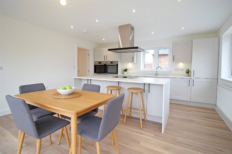 The kitchen dining space is set at the end of the entrance hall and provides the real focal point of the home and centred around the desirable central island unit, bi-folding doors from the kitchen opening right up provide that perfect summer ambiance of bringing the outdoors inside and linking the two perfectly, from the kitchen a useful utility room is positioned for those every day chores.