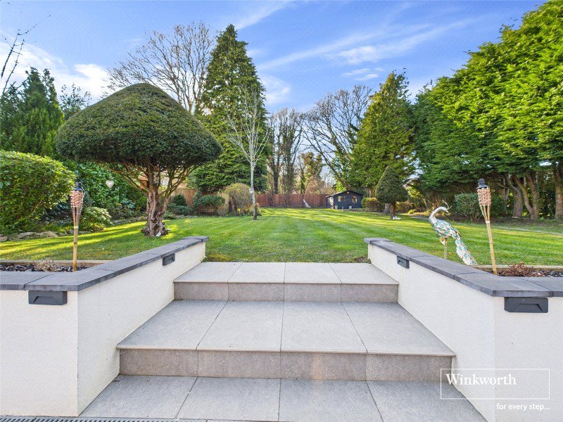 Set within a plot of approximately half an acre, this home offers extensive outdoor space, including separate gardens to the left and right of the property, a wrap-around patio, and a large gravel driveway providing ample parking. A double garage with workshop area and a summer house with sauna are also located within the grounds. The property is beautifully landscaped, with mature hedging and flower beds providing privacy and charm. The extensive grounds offer the perfect space for outdoor living and entertaining.