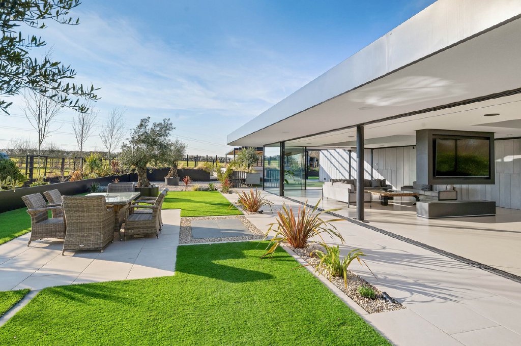 The luxury extends to the outdoors, where you’ll find a fully equipped outdoor kitchen ideal for al fresco dining and entertaining, maximised with stunning contemporary lighting. Surrounded by lush gardens, this space offers a peaceful retreat and a perfect setting for enjoying warm summer evenings with friends and family. The expansive lawn and immaculately landscaped garden further enhance the outdoor living experience, providing plenty of space for both recreation and relaxation.