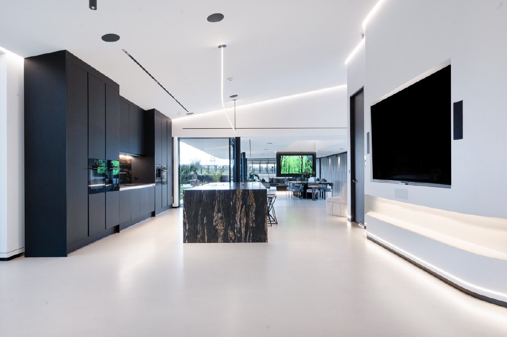The home's architectural design is both modern and visually striking. Expansive glazing floods the property with natural light offering a seamless link to outdoors. Upon arrival, you’re welcomed by grand 3-meter doors that open to reveal a world of contemporary elegance. Inside, soaring 4.6-meter ceilings create a sense of openness and grandeur, offering an airy and inviting atmosphere. The layout is perfectly suited to entertaining but also ideal for modern family living, balancing style with functionality.
