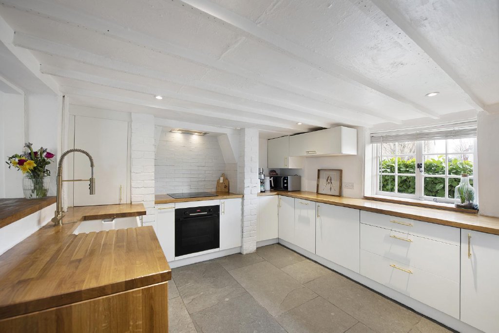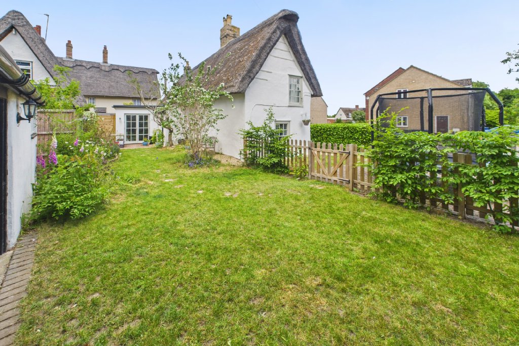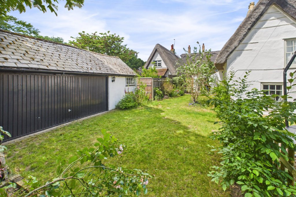 “One of the things I love most about Long Thatch is the balance between old and new. The original beams and fireplaces blend beautifully with the modern updates. Our main bedroom is a peaceful retreat, decorated in soft white and grey tones, with newly fitted wardrobes and drawers and a large window overlooking the picturesque thatched cottages of the village. The kitchen maintains a modern cottage feel and opens into our new garden room extension, creating a bright and airy space while still retaining the cosy charm of cottage living. The garden has been thoughtfully extended, with a new patio built using rustic old bricks. Sitting outside in the summer, surrounded by other thatched roofs and listening to the historic planes from Duxford flying overhead, feels truly special.”