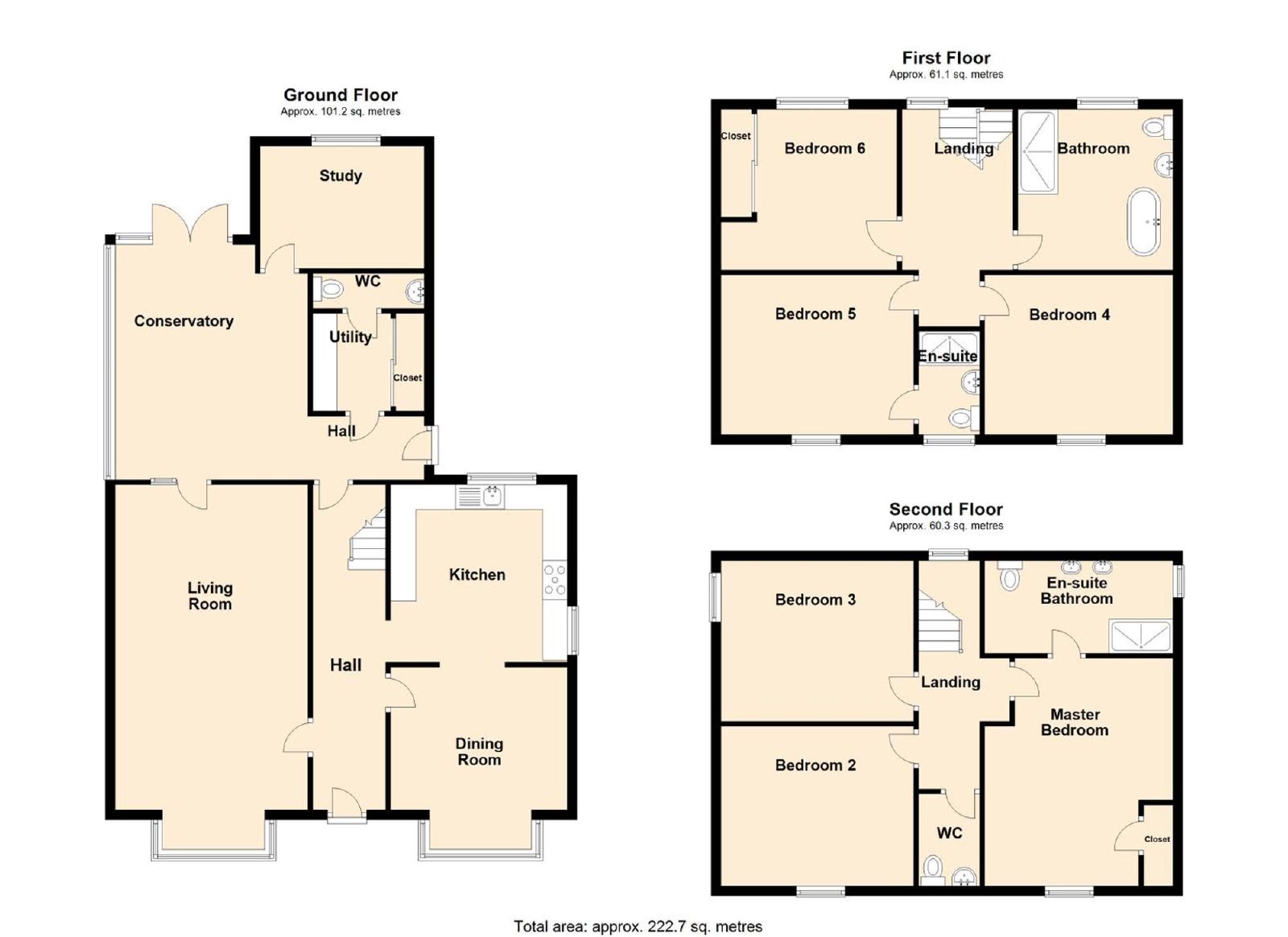 On the second floor, there are three more bedrooms; the master boasts an impressive and luxurious en-suite shower.