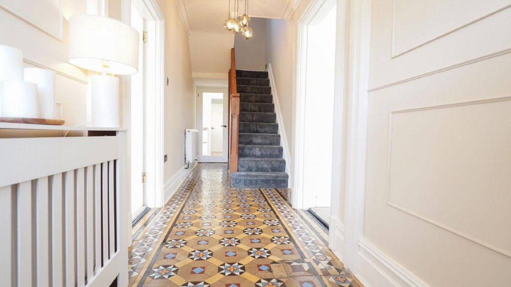 The property, set on three floors, offers two front reception rooms, a refitted luxury kitchen, a conservatory, a utility room, a WC, a cloakroom, and a study on the ground floor. On the first floor are three good size bedrooms and an attractively refitted family bathroom and en-suite to the principal bedroom.