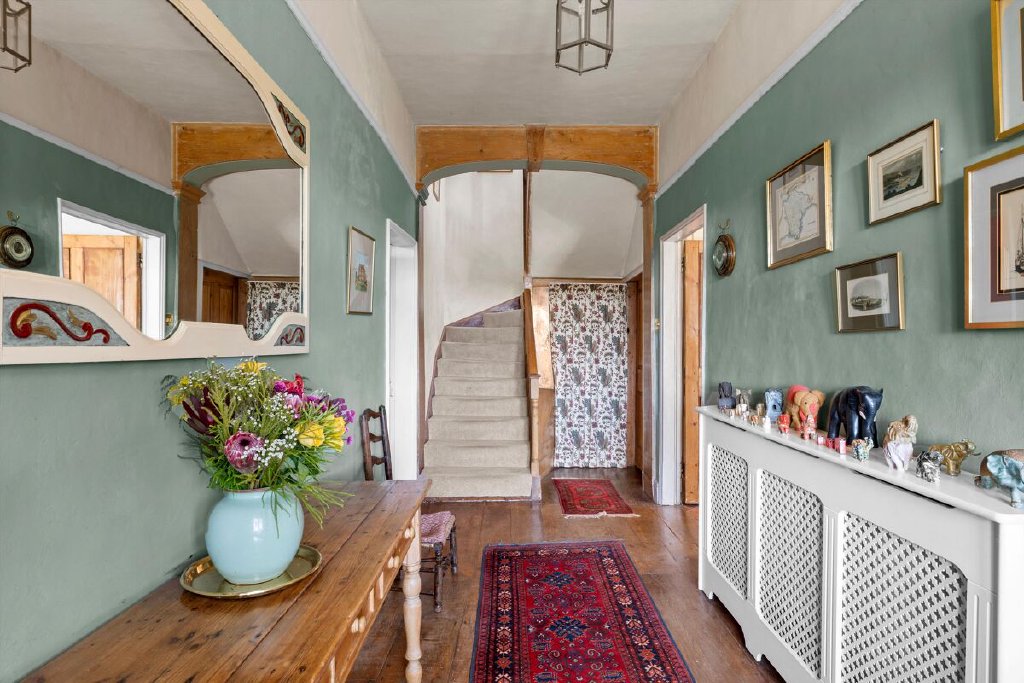 While the house boasts generous proportions, it retains many original features, including ingle nook fireplaces, exposed beams, and flagstone floors. A charming salting block remains in the kitchen, adding character to the home.