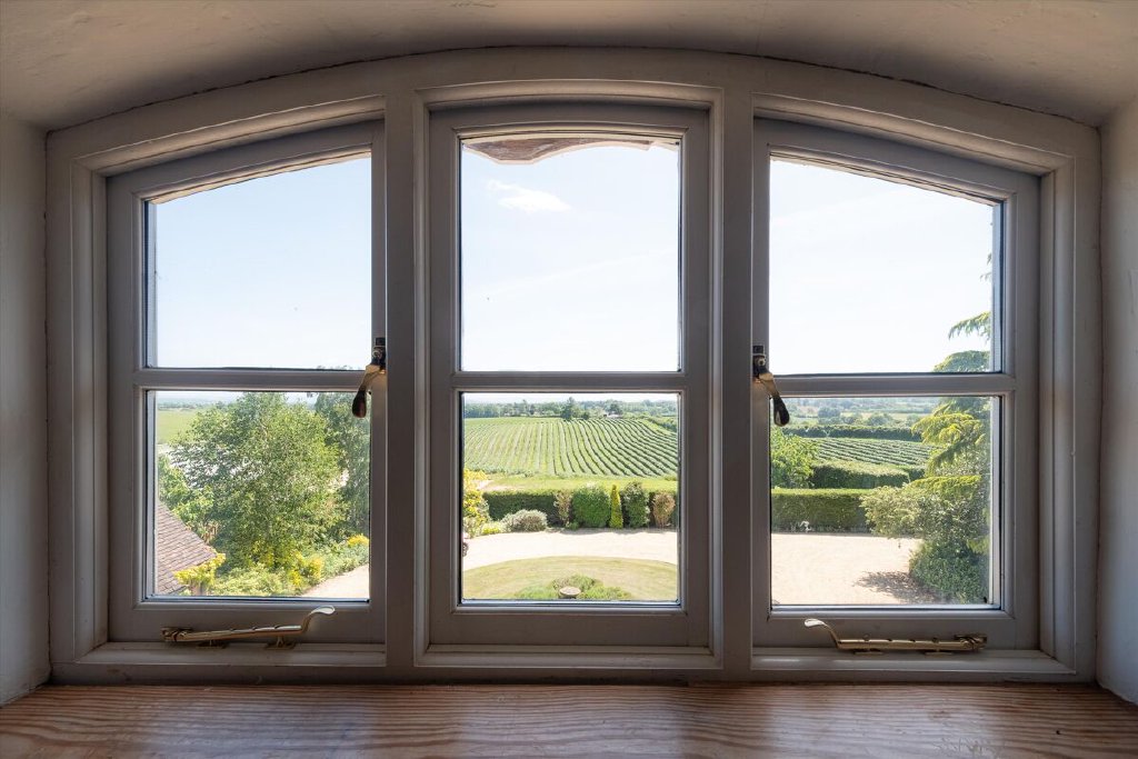 The first-floor principal bedroom benefits from stunning views of the Cotswolds and May Hill and includes a dressing room and separate shower room. Three additional double bedroom suites are located on the first floor. The second floor hosts three further large double bedrooms and a bathroom.